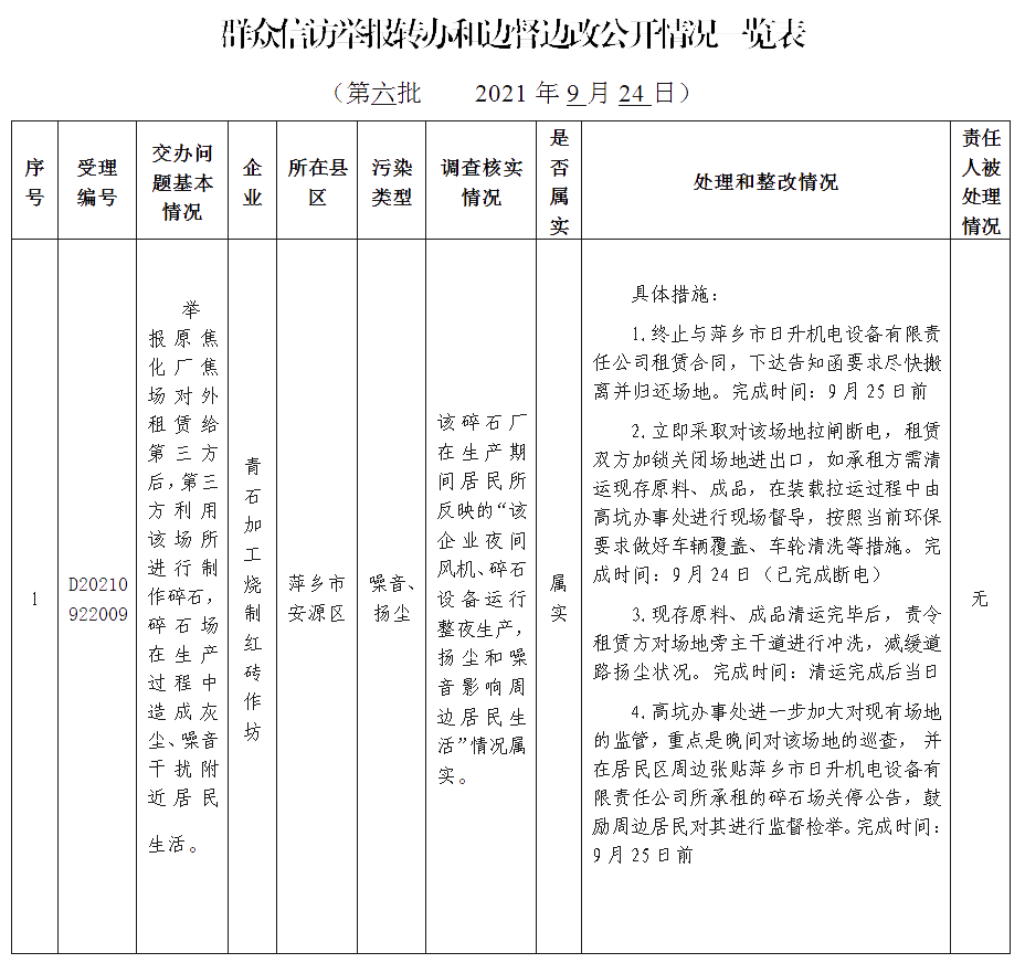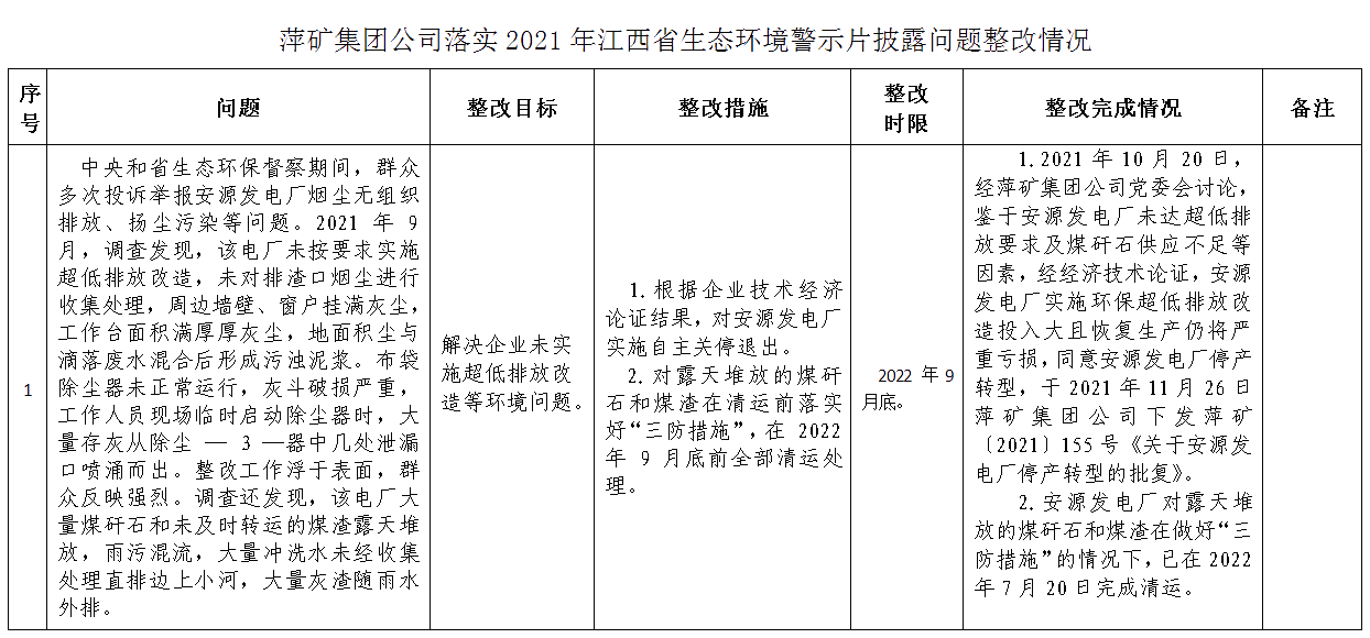 萍礦集團公司落實2021年江西省生態(tài)環(huán)境警示片披露問題完成情況公示