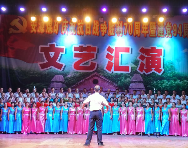在集團(tuán)公司紀(jì)念抗戰(zhàn)勝利70周年系列活動(dòng)中,文藝匯演是其中的重要一環(huán)。七一前后,高坑、安源、白源、青山等礦相繼舉辦了一場(chǎng)精彩的文藝晚會(huì),共同慶祝黨的94歲華誕,紀(jì)念抗日戰(zhàn)爭(zhēng)暨世界反法西斯戰(zhàn)爭(zhēng)勝利70周年。 各單位的文藝晚會(huì)可說是精彩紛呈,高潮不斷。廣大職工家屬積極參與,所有節(jié)目均由職工自編自導(dǎo)自演,特別是頗有表演、創(chuàng)作功底的社區(qū)離退休職工更是成為了其中的主力。節(jié)目形式也豐富多彩,合唱、獨(dú)唱、對(duì)唱、舞蹈、朗誦、京劇、春鑼等節(jié)目紛紛登場(chǎng),嘹亮的歌聲、優(yōu)美的舞姿、深情的誦讀,帶領(lǐng)著廣大觀眾重溫了那一段血與火的悲壯歷史。由安源煤礦百名退休老工人組成的大合唱《大刀進(jìn)行曲》和《沒有共產(chǎn)黨就沒有新中國》,歌聲高亢,氣勢(shì)磅礴,如排山倒海之勢(shì),贏得了現(xiàn)場(chǎng)觀眾一陣陣熱烈的掌聲。青山煤礦社區(qū)的紅歌聯(lián)唱串燒《主席的話兒記心上》,《大刀進(jìn)行曲》,《地道戰(zhàn)》,《南泥灣》,《歌唱祖國》等,以悠揚(yáng)的歌聲將現(xiàn)場(chǎng)觀眾帶進(jìn)了那個(gè)戰(zhàn)火紛飛的年代。紅歌手楊衛(wèi)華演唱的《咱老百姓》、《在陽光路上》讓白源煤礦的廣大職工家屬再一次領(lǐng)略了他那不俗的唱功,徹底點(diǎn)燃了全場(chǎng)的激情。