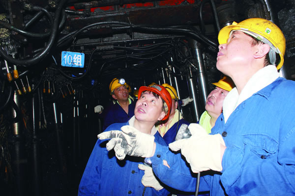 9月9日,來(lái)自集團(tuán)公司各礦的礦長(zhǎng)、副礦長(zhǎng)和相關(guān)處室負(fù)責(zé)人乘坐罐籠,落下兩道天眼子,來(lái)到青山煤礦東416盤(pán)區(qū)采三區(qū)82工作面開(kāi)展質(zhì)量標(biāo)準(zhǔn)化互動(dòng)活動(dòng)。