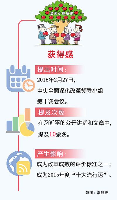 推動(dòng)各項(xiàng)政策落地、落細(xì)、落實(shí),讓民營企業(yè)真正從政策中增強(qiáng)獲得感。3月4日下午,中共中央總書記習(xí)近平看望參加全國政協(xié)會(huì)議的民建、工商聯(lián)界委員時(shí),又提到了“獲得感”一詞。“獲得感”提出一年多來,被習(xí)近平在不同的場合多次提及,從一個(gè)接地氣的新詞成為改革成效的評價(jià)標(biāo)準(zhǔn)之一,也成為老百姓切實(shí)的感受。 改革成效的評價(jià)標(biāo)準(zhǔn)之一 2015年2月27日,在中央全面深化改革領(lǐng)導(dǎo)小組第十次會(huì)議上,習(xí)近平總書記在公開場合第一次提到“獲得感”。他強(qiáng)調(diào),要處理好改革“最先一公里”和“最后一公里”的關(guān)系,突破“中梗阻”,防止不作為,把改革方案的含金量充分展示出來,讓人民群眾有更多獲得感。 去年,習(xí)近平同黨外人士座談時(shí)強(qiáng)調(diào),改革發(fā)展搞得成功不成功,最終的判斷標(biāo)準(zhǔn)是人民是不是共同享受到了改革發(fā)展成果。今年2月,中央全面深化改革領(lǐng)導(dǎo)小組第二十一次會(huì)議進(jìn)一步指出,把是否促進(jìn)經(jīng)濟(jì)社會(huì)發(fā)展、是否給人民群眾帶來實(shí)實(shí)在在的獲得感,作為改革成效的評價(jià)標(biāo)準(zhǔn)。 獲得感作為改革成效的評價(jià)標(biāo)準(zhǔn)之一,與鄧小平提出的“三個(gè)有利于”標(biāo)準(zhǔn)一脈相承,是在全面深化改革背景下的豐富和發(fā)展,也是對改革實(shí)踐的新認(rèn)識(shí)。 物質(zhì)層面和精神層面的統(tǒng)一 讓人民群眾有更多的獲得感,道出了群眾的心聲。 2016年新年賀詞中,習(xí)近平指出,經(jīng)過全國各族人民共同努力,“十二五”規(guī)劃圓滿收官,廣大人民群眾有了更多獲得感。 2010年到2015年,全國居民人均可支配收入從12520元增加到21966元,年均實(shí)際增長8.9%,快于同期國內(nèi)生產(chǎn)總值增長。同時(shí),居民收入差距呈縮小趨勢。2010年到2015年,全國居民收入基尼系數(shù)從0.481下降到0.462。建立了統(tǒng)一的城鄉(xiāng)居民基本養(yǎng)老保險(xiǎn)制度。全民醫(yī)保體系基本建立。這些都是群眾切實(shí)感受到的獲得感。 此外,獲得感還來自精神層面,生活有尊嚴(yán),每個(gè)人對夢想追求的接近,這個(gè)夢想就是“中國夢”。習(xí)近平在十八屆中共中央政治局常委首次同中外記者見面時(shí)曾深情地說,人民對美好生活的向往,就是我們的奮斗目標(biāo)。 通過改革在共建共享中實(shí)現(xiàn) 獲得感怎么實(shí)現(xiàn)? 人世間的一切幸福都需要靠辛勤的勞動(dòng)來創(chuàng)造。獲得感既是改革的評價(jià)標(biāo)準(zhǔn),也是改革的目的。改革、共建、共享與獲得感的實(shí)現(xiàn),緊緊聯(lián)系在一起。 十八屆五中全會(huì)提出,堅(jiān)持共享發(fā)展,必須堅(jiān)持發(fā)展為了人民、發(fā)展依靠人民、發(fā)展成果由人民共享,作出更有效的制度安排,使全體人民在共建共享發(fā)展中有更多獲得感。習(xí)近平在2016年初調(diào)研重慶時(shí)強(qiáng)調(diào),在整個(gè)發(fā)展過程中,都要注重民生、保障民生、改善民生,讓改革發(fā)展成果更多更公平惠及廣大人民群眾。 2014年,中央深改組確定的80個(gè)重點(diǎn)改革任務(wù)基本完成,有關(guān)部門完成108個(gè)改革任務(wù),各方面共出臺(tái)370條改革舉措。2015年,各領(lǐng)域改革再提速,中央深改組確定的101個(gè)重點(diǎn)改革任務(wù)基本完成,中央有關(guān)部門完成153個(gè)改革任務(wù),各方面共出臺(tái)改革成果415條。十八大以來,改革一路攻堅(jiān)克難,讓群眾享受到實(shí)實(shí)在在的改革成果。