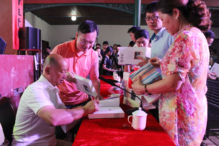 圖為作者李小建(左一)在簽名贈(zèng)書。
