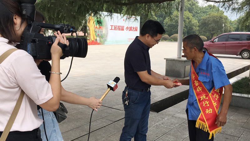 圖為萍礦城市綜合服務公司領導為黃余敏送上拾金不昧獎金。