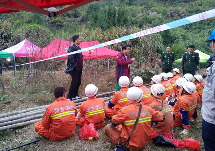 11月28日上午,湘雅萍礦合作醫(yī)院接到萍鄉(xiāng)市衛(wèi)計委指示:湘東區(qū)荷堯鎮(zhèn)一未開發(fā)的地下溶洞有被困人員,需要災(zāi)難應(yīng)急醫(yī)學(xué)救援隊立即前去支援。該院應(yīng)急救援隊成員孫亞斌、肖饒軍、江麗和倪堅組成的救援小組帶齊急救藥品及物品迅速出發(fā)。 加入醫(yī)療救援的還有湘東區(qū)人民醫(yī)院、湘東區(qū)中醫(yī)院、贛西醫(yī)院及荷堯衛(wèi)生院的救援人員。湘雅萍礦合作醫(yī)院是萍鄉(xiāng)市醫(yī)學(xué)會災(zāi)難醫(yī)學(xué)分會主委單位,多次參與礦難救援、房屋坍塌救援,積累了豐富的災(zāi)難醫(yī)療應(yīng)急救援經(jīng)驗,此次被衛(wèi)計委指派參與救援也肩負(fù)著對基層醫(yī)院進行醫(yī)療救援指導(dǎo)的任務(wù)。 救援現(xiàn)場,公安、消防、礦山救護、安監(jiān)、水務(wù)、供電、醫(yī)療等部門正有條不紊地開展工作。湘雅萍礦合作醫(yī)院醫(yī)療救援隊一到現(xiàn)場就忙碌起來,迅速布置好醫(yī)療救援區(qū),時刻準(zhǔn)備救治傷者。