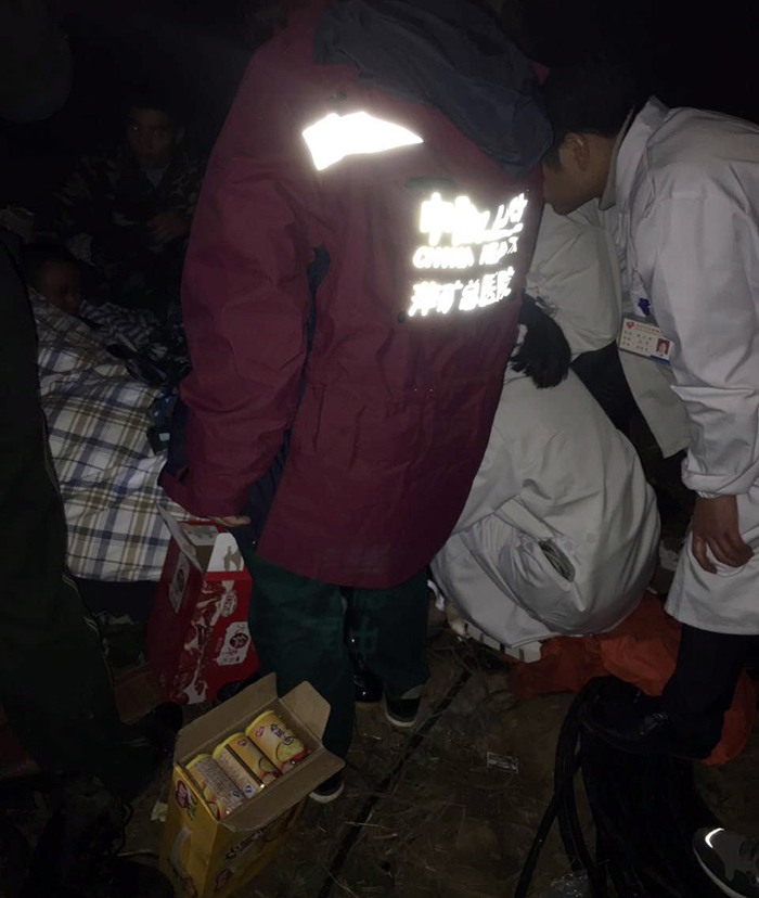 天然溶洞洞口狹小,僅一人高、兩人并排寬,里面積水深。兩名消防救援人員由于連續(xù)在濕冷的環(huán)境中工作,出現(xiàn)了虛脫現(xiàn)象。醫(yī)療救援隊馬上對他們進行醫(yī)療救援,為他們換上干衣服,測血壓,喝溫水,其中一名在現(xiàn)場就情況好轉(zhuǎn)無恙,另一名好轉(zhuǎn)后至附近醫(yī)院繼續(xù)治療。救治過程中,肖饒軍和江麗迅速準(zhǔn)確的急救技術(shù)、和藹可親的溝通能力,贏得在場官兵和指揮中心的認(rèn)可。 救援期間,消防救援人員輪換進入溶洞,溶洞里黑暗,洞壁、水里的石頭容易擦傷皮膚。醫(yī)務(wù)人員細致地為他們處理小傷口。下午三點多,一批救援人員被輪換出來,饑腸轆轆,此時飯點已過,體力也不支了,醫(yī)療救援人員趕緊拿出輸液用糖水分發(fā)給消防人員喝,避免低血糖情況,增加熱量,保障救援人員的體力。 時間一點一滴過去,天色漸漸暗下來,救援還在持續(xù)。救援隊倪堅積極幫助現(xiàn)場應(yīng)急組搭建帳篷,運送急救所需物資。晚上臨近十一點,萍鄉(xiāng)市人民醫(yī)院和二醫(yī)院的醫(yī)療救援隊也來到了現(xiàn)場。醫(yī)務(wù)人員時刻待命,輪流著就地休息,小瞇一會。 一直到今日凌晨3點多,從指揮部得知已聯(lián)系上被困人員,醫(yī)療救援隊人員精神一振。不久,最后五名被困人員被陸續(xù)救出。經(jīng)醫(yī)生檢查,三名專業(yè)巖洞工作人員身體狀況還好,兩名攝影師有些虛弱,給予專業(yè)醫(yī)療救助后也無大礙。 凌晨五點多,救援任務(wù)圓滿完成!白钚量嗟倪是進洞里救援的消防隊員,相比而言,我們做得比較少!眳⑴c此次救援的肖饒軍說。