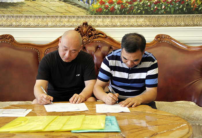 圖為林遠旺(右)和黎鵬(左)正在簽字