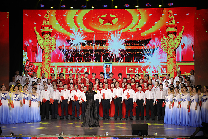 演出最后,萍礦集團全體領(lǐng)導(dǎo)班子成員參與的百人大合唱《沒有共產(chǎn)黨就沒有新中國》把氣氛再次推向高潮,表達了萍礦兒女對黨和國家的深情與祝愿。嘹亮的歌聲,在現(xiàn)場久久回蕩。大家手揮紅旗,定格永恒。