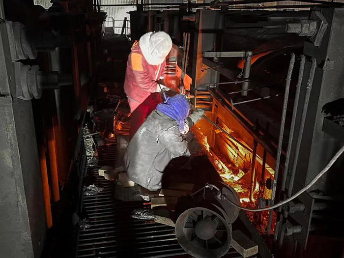一輪又一輪的“接力賽”,就這樣有條不紊地進行。為在最短時間內(nèi)完成搶修,他們在搶修現(xiàn)場囫圇吞棗般吃了午飯后,又迅速投入戰(zhàn)斗。歷時7個小時,大家齊心協(xié)力,終于將120多塊新耐火磚砌筑完成,圓滿完成了搶修任務(wù)。