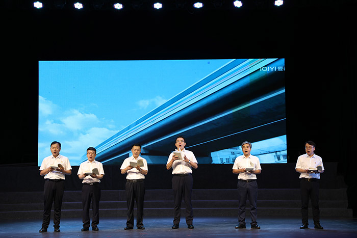 “我們的人民熱愛(ài)生活,期盼有更好的教育、更穩(wěn)定的工作、更滿意的收入、更可靠的社會(huì)保障、更高水平的醫(yī)療衛(wèi)生服務(wù)、更舒適的居住條件、更優(yōu)美的環(huán)境,期盼孩子們能成長(zhǎng)得更好、工作得更好、生活得更好。人民對(duì)美好生活的向往,就是我們的奮斗目標(biāo)!彪S著習(xí)近平總書(shū)記重要講話視頻結(jié)束,集團(tuán)領(lǐng)導(dǎo)班子成員慷慨激昂地接續(xù)誦讀《習(xí)近平新時(shí)代中國(guó)特色社會(huì)主義思想專題摘編》中“堅(jiān)持以人民為中心”部分內(nèi)容,用激情澎湃、高昂向上的時(shí)代強(qiáng)音,激蕩起廣大黨員干部的昂揚(yáng)斗志,展現(xiàn)出新時(shí)代領(lǐng)導(dǎo)班子的卓然風(fēng)采,充滿了濃濃的愛(ài)國(guó)情、向黨志、人民情!白屓w中國(guó)人民和中華兒女在實(shí)現(xiàn)中華民族偉大復(fù)興的歷史進(jìn)程中共享幸福和榮光!”鏗鏘有力的誦讀將整場(chǎng)活動(dòng)推向高潮,現(xiàn)場(chǎng)響起熱烈掌聲。