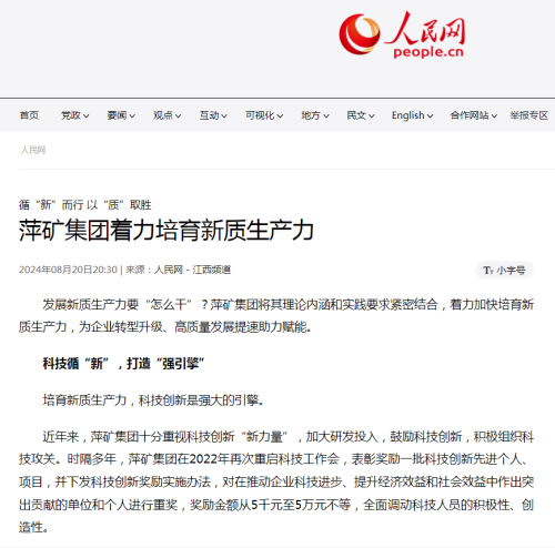 “我們將不斷加大科技創(chuàng)新力度,著力擺脫傳統(tǒng)經(jīng)濟(jì)增長(zhǎng)方式和生產(chǎn)力發(fā)展路徑,推動(dòng)技術(shù)革命性突破、生產(chǎn)要素創(chuàng)新性配置和產(chǎn)業(yè)深度轉(zhuǎn)型升級(jí),加速培育和發(fā)展新質(zhì)生產(chǎn)力,全力打造企業(yè)高質(zhì)量發(fā)展‘新引擎’‘新動(dòng)能’。”萍礦集團(tuán)黨委書(shū)記、董事長(zhǎng)吳培南表示。