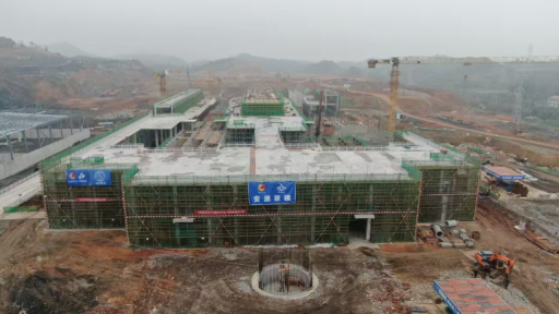 綜合原料庫:基礎(chǔ)工程完成95%,鋼結(jié)構(gòu)吊裝完成 80%。