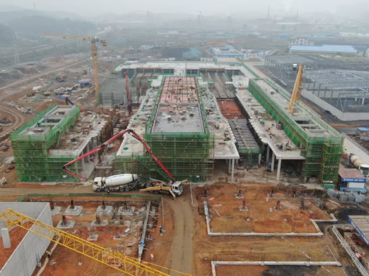 成型工段:基礎(chǔ)工程完成80%,主體工程完成80%。