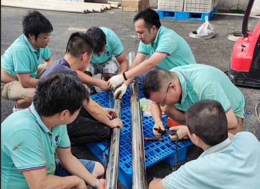 該廠今年2月才正式投入生產(chǎn),設備升級改造后,每小時可生產(chǎn)28000瓶小瓶水。9月4日,熱融膠機突發(fā)故障,貼標異常,膠水四溢,標簽卷入膠箱,阻礙了生產(chǎn)進度。廠家建議更換一臺新的設備,但至少需要等3天,而當時正值生產(chǎn)旺季,時間就是產(chǎn)量、就是效益,根本等不起。 廠區(qū)黨支部書記陶賢森主動請纓,提出自己組裝,并迅速組織大家投入戰(zhàn)斗。上午,大家齊心協(xié)力將舊設備移出,汗水濕透了衣衫。午餐后,又馬不停蹄繼續(xù)工作,直至深夜11時,然而輸送鏈始終對接不上。連續(xù)14個小時的高強度勞作,疲憊如潮水般涌來,當有人提出次日外出加工的建議時,陶賢森堅定地望向黨員、鉗工班長陳江:“依照原模型,能做出來嗎?”陳江仔細觀察后給出肯定答復。 萬籟俱寂的夜晚,廠區(qū)內(nèi)燈火通明,陳江振奮精神,專注地焊接材料,火花在夜色中閃爍。其他人也各司其職,整理線路、精準定位。在大家不懈努力下,難關(guān)終于被攻克,每個人臉上都露出了喜悅之情。次日,經(jīng)過緊張調(diào)試,下午生產(chǎn)恢復正常,不僅搶回了寶貴時間,而且更換后的除膠劑使用量大幅減少,由2天1瓶變?yōu)?周不到1瓶,生產(chǎn)成本顯著降低,為企業(yè)發(fā)展注入了強心劑。