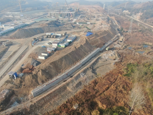 外圍擋土墻:外圍擋土墻已完成57%。