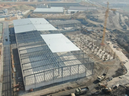 綜合原料庫:基礎(chǔ)工程完成100%,鋼結(jié)構(gòu)吊裝完成100%,地坪工程完成78%。 原料車間:基礎(chǔ)工程完成100%。