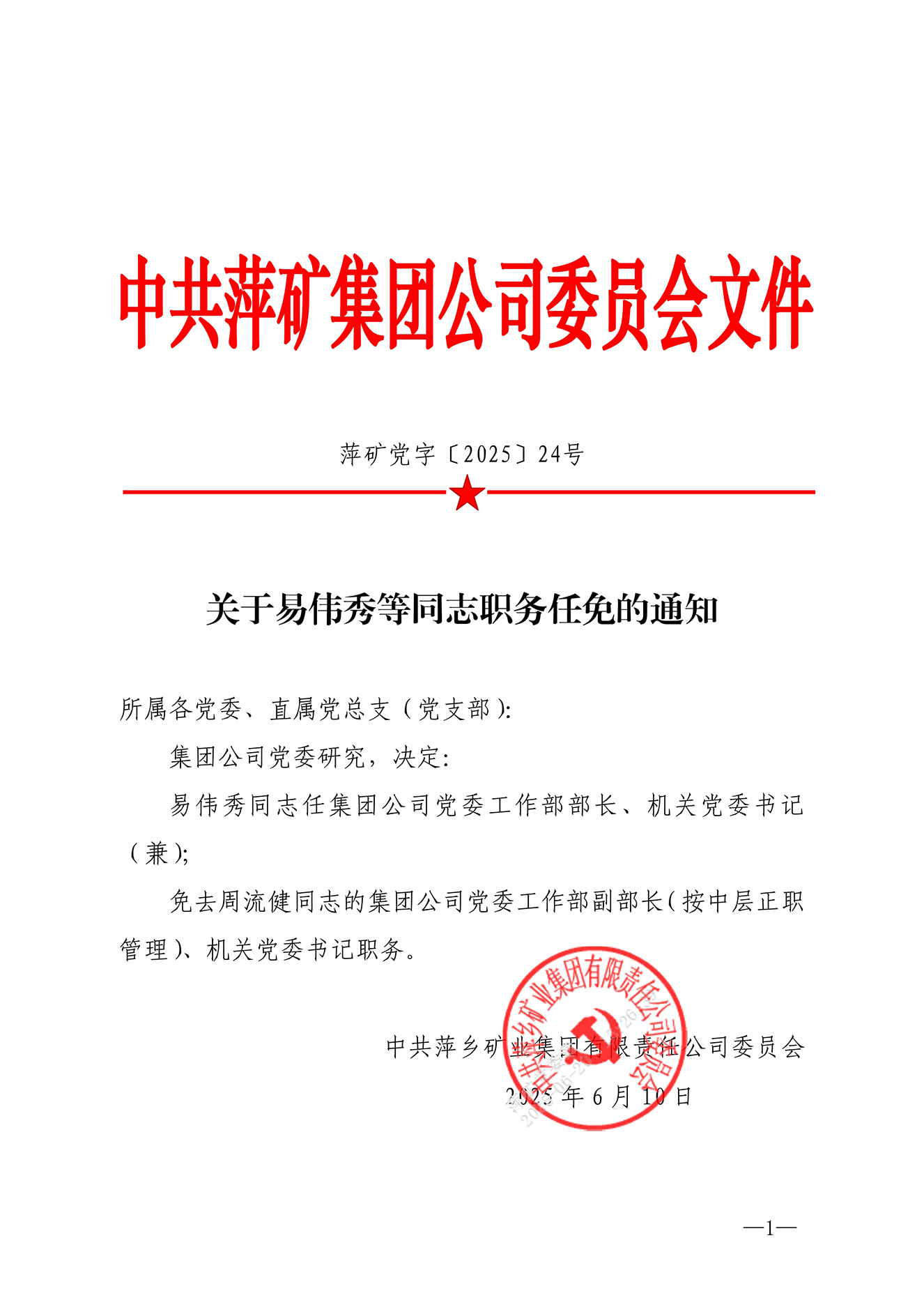 關(guān)于易偉秀等同志職務(wù)任免的通知
