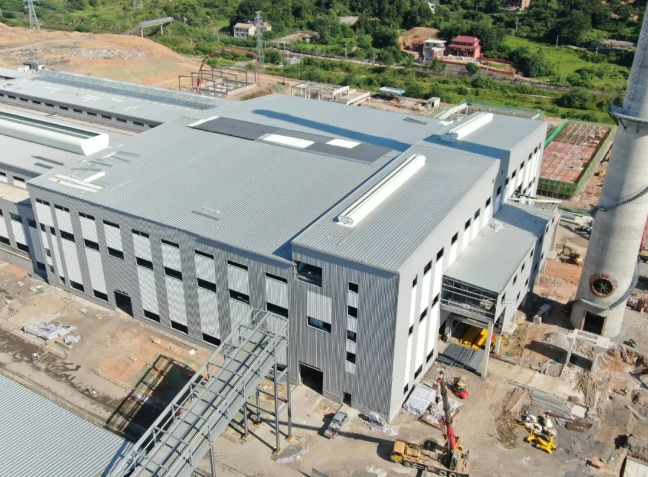 綜合原料庫:基礎(chǔ)工程完成,鋼結(jié)構(gòu)安裝完成95%,墻面板安裝完成75%。