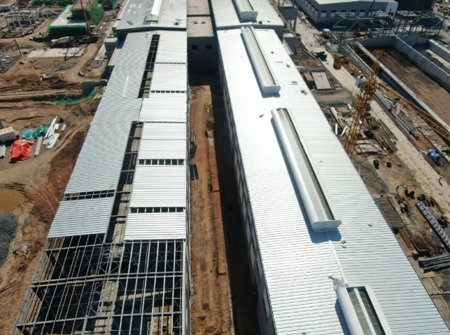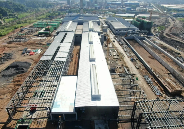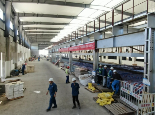 成型工段:700噸生產(chǎn)線車間鋼結(jié)構(gòu)完成98%,500噸生產(chǎn)線鋼結(jié)構(gòu)完成94%。