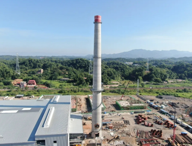 煙囪:基礎(chǔ)工程已完成,主體結(jié)構(gòu)已封頂,室外鋼爬梯完成,內(nèi)襯已完成。