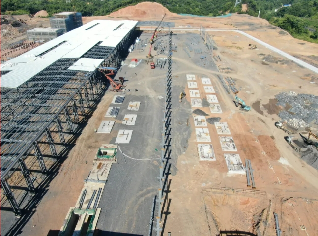 裝箱工段:獨(dú)立基礎(chǔ)工程已完成,鋼結(jié)構(gòu)安裝完成38%。機(jī)械手基礎(chǔ)完成90%。