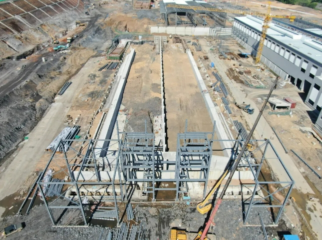 公用工程:氮站及空壓站設(shè)備基礎(chǔ)完成93%;循環(huán)水系統(tǒng)水池東側(cè)水池混凝土澆筑完成,西側(cè)水池模板安裝;10kV配電站主體結(jié)構(gòu)完成95%;余熱發(fā)電一層澆筑完成,二層內(nèi)架搭設(shè)。