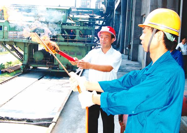 上午11點(diǎn)18分,萍鄉(xiāng)焦化有限責(zé)任公司40萬噸續(xù)建工程正式點(diǎn)火烘爐。集團(tuán)公司董事長、黨委書記彭志祥,萍鄉(xiāng)焦化有限責(zé)任公司總經(jīng)理朱小平,高坑鎮(zhèn)黨委書記余勤,分別手持熊熊燃燒的火把,分四處將爐火點(diǎn)燃,整個(gè)工程烘爐正式開始。