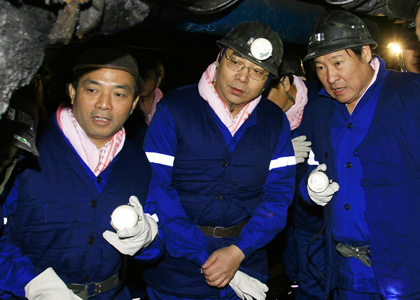 11月27日,國(guó)家安全監(jiān)察總局副局長(zhǎng)、國(guó)家煤礦安全監(jiān)察局局長(zhǎng)趙鐵錘一行專程到安源礦下井考察。省安監(jiān)局局長(zhǎng)張?zhí)疑,萍礦集團(tuán)公司董事長(zhǎng)、黨委書(shū)記彭志祥等陪同。