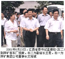 2001年6月23日,江西省委書記孟建柱、副省長王君率江西省有關部門負責人到萍礦視察,先后到客車廠、浮玻廠檢查指導工作。
