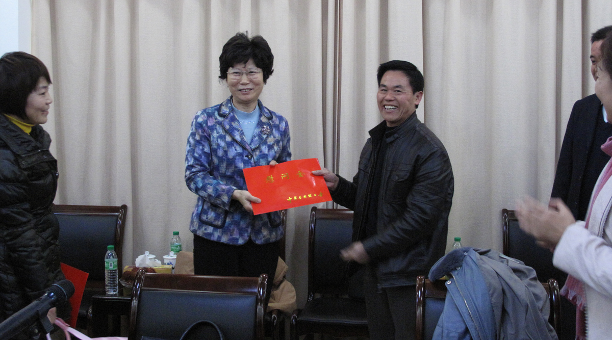 陳秀榕為全國勞模李洪定送上慰問金(記者 袁鵬 攝)