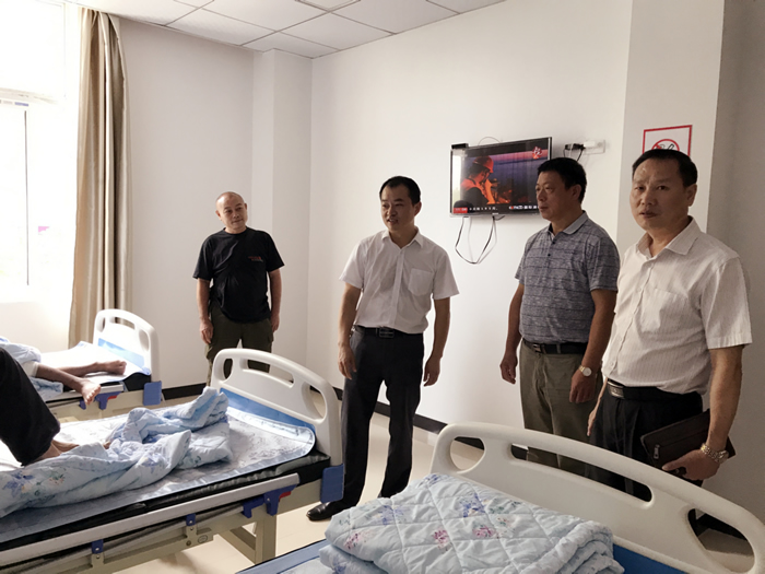 圖為鐘億國(guó)(右二)在病房看望工傷患者。 一群積極響應(yīng)國(guó)家去產(chǎn)能政…